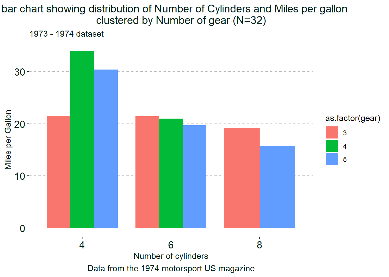 Another example, we want to create a bar chart for cyl, and mpg, clustered by gear