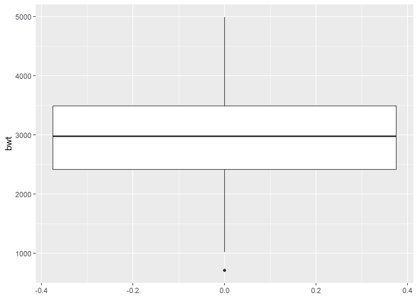 ggplot(birthwt, aes(y=bwt)) + geom_boxplot()