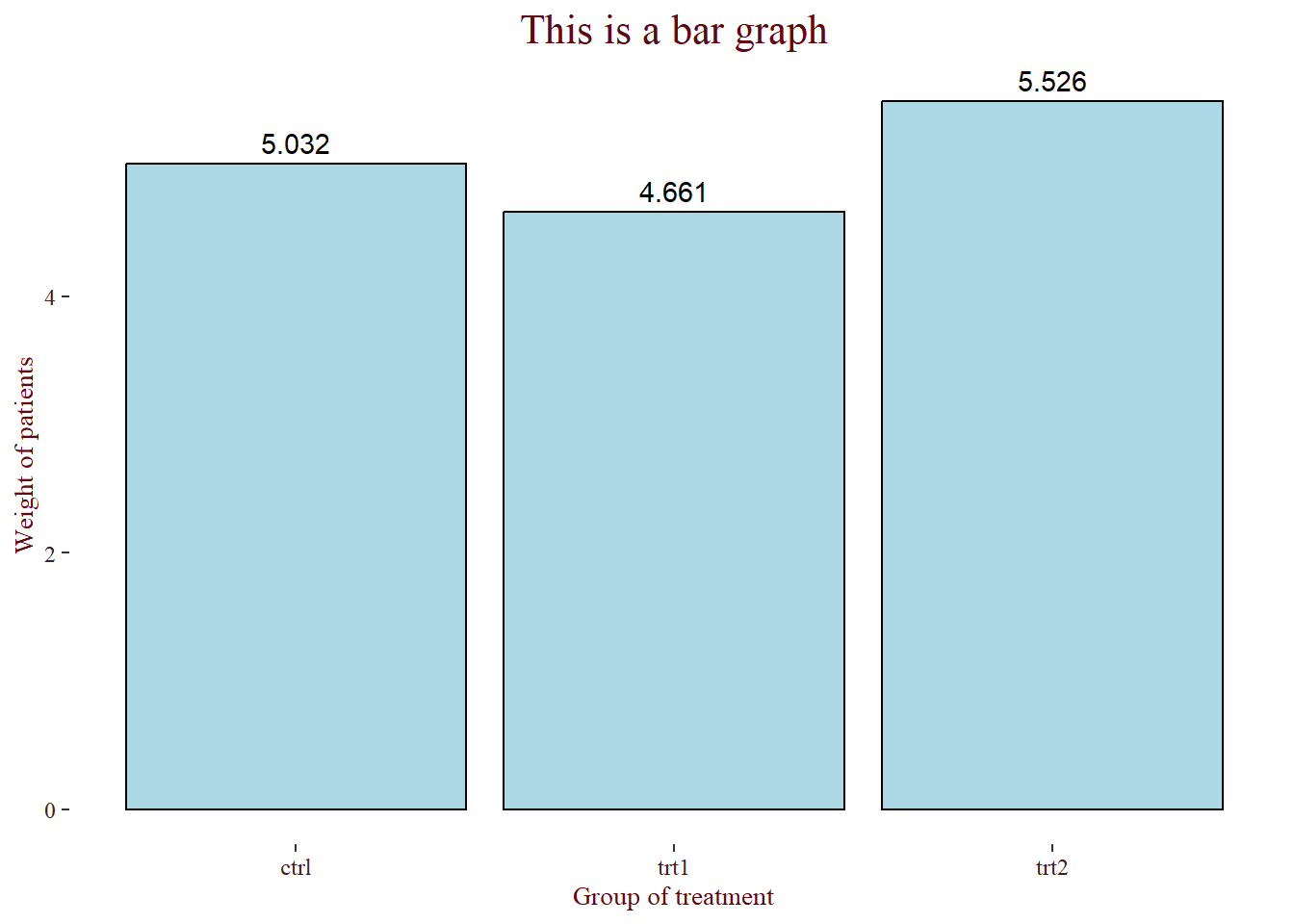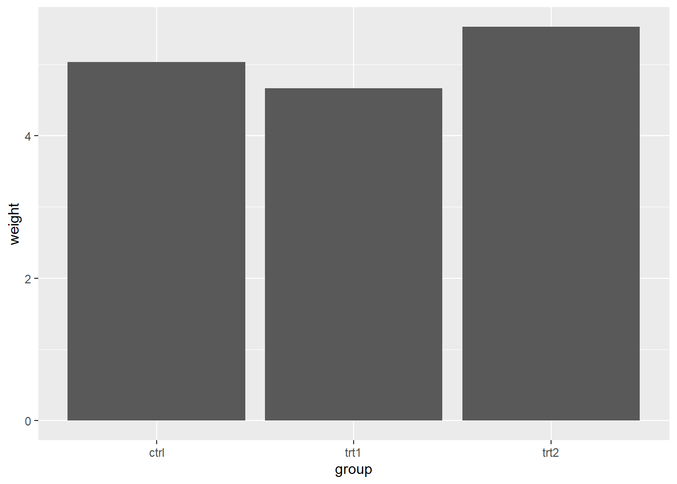 In geom_bar function, we use stat=“identity” argument because we want R to measure the group variable using y=weight.