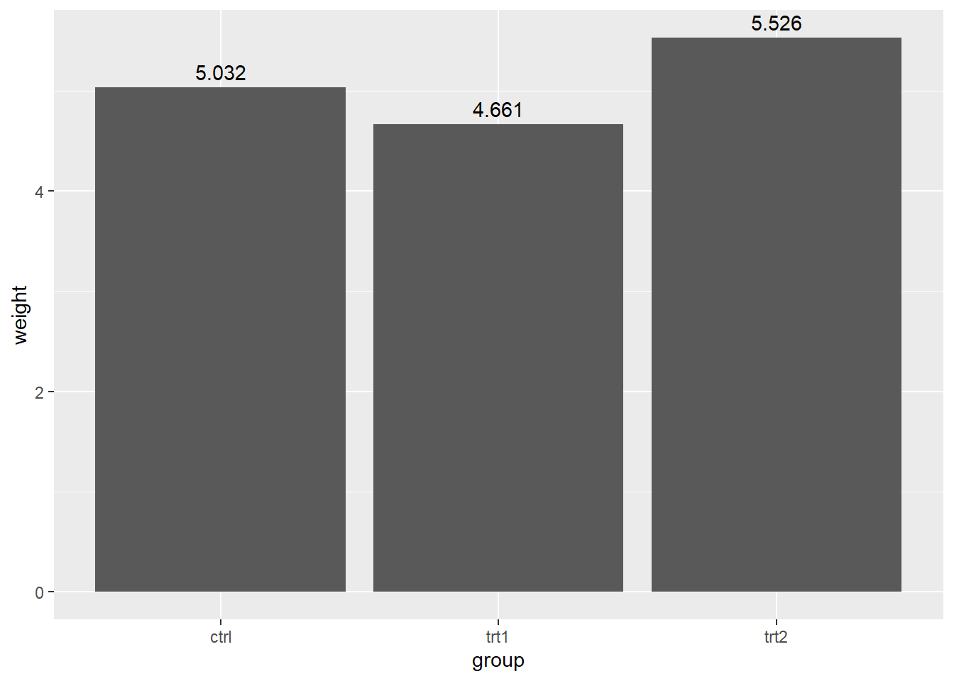 geom_text(aes(x= group, y = weight, label = paste0(weight)), vjust = -0.5)