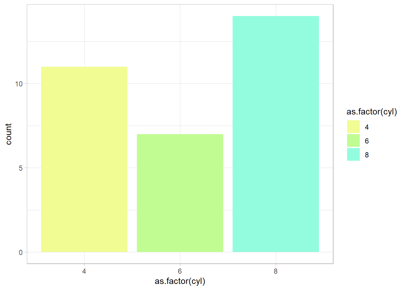 aes(x=as.factor(cyl), fill=as.factor(cyl))) +